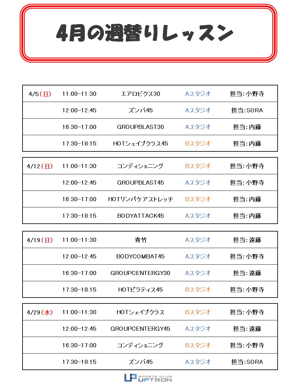 【2026年 4月週替わりレッスン】